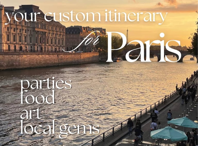 My Paris itineraries are perfect for travelers who want to feel somewhere between a tourist and a local. You'll check out iconic sights (if you want to), but also discover incredible food, cozy bars, pop-up art shows, scenic walks, and real nightlife - not tourist traps.