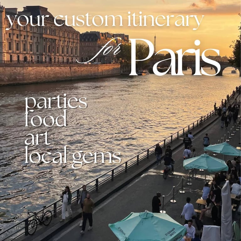 My Paris itineraries are perfect for travelers who want to feel somewhere between a tourist and a local. You'll check out iconic sights (if you want to), but also discover incredible food, cozy bars, pop-up art shows, scenic walks, and real nightlife - not tourist traps.
